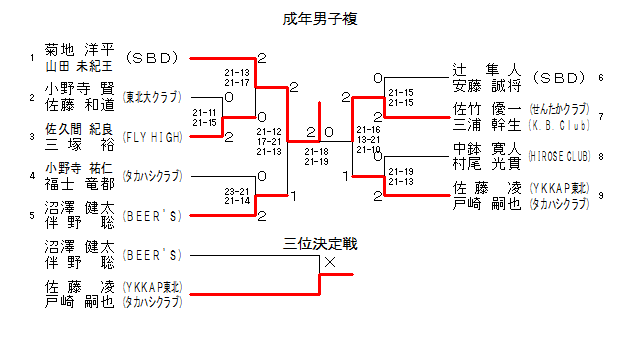 | 30MD-3 | ‚a‚d‚d‚qúV‚r | ÀàV Œ’‘¾E”º–ì ‘ | ‚Q | 23-21 21-14 | ‚O | ¬–쎛 —SmE•ŸŽm —³“s | ƒ^ƒJƒnƒVC. | |