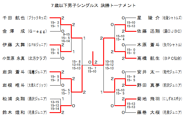 | 7B-10 | ‰–â}Jr. | ŠâŸº ‘““l | ‚Q | 15- 5 15- 7 | ‚O | —é–Ø àŠ˜a | ‰ÔòJr. | |