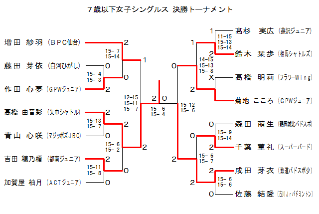 | 7G-9 | –î‹ÐƒVƒƒƒgƒ‹ | ûü‹´—R‰¹Ê | ‚Q | 15- 6 15- 2 | ‚O | ‹g“c•ä”T‰| | “s“ìJr. | |