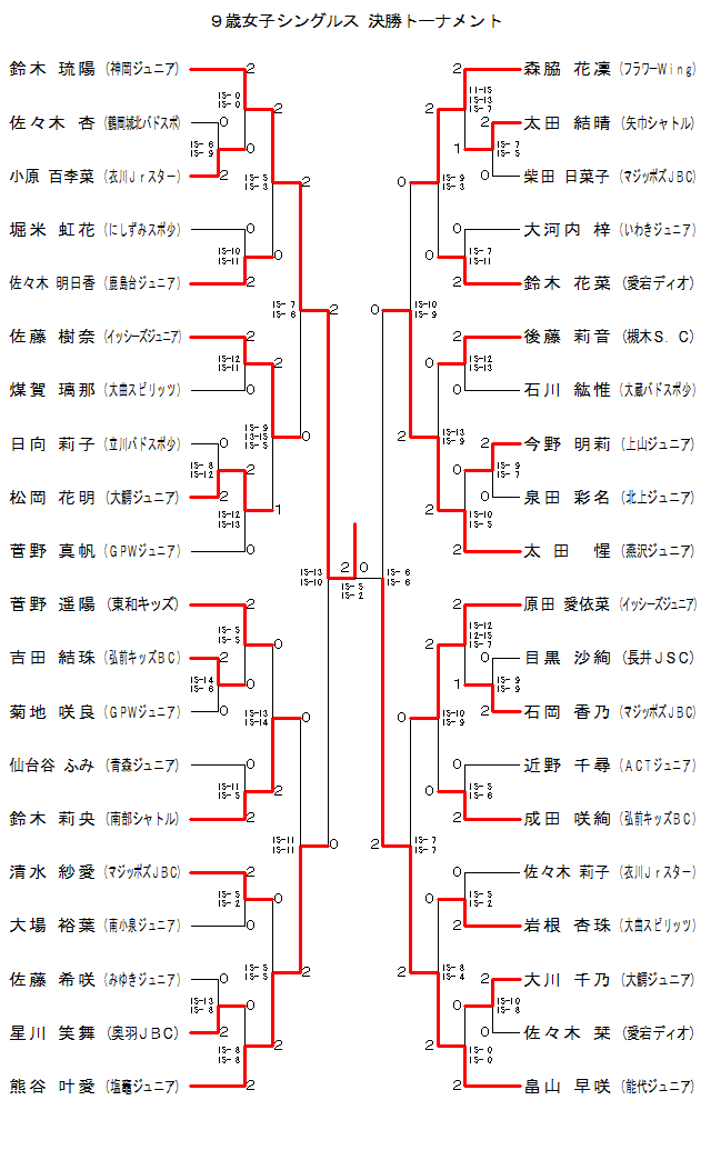 | 9G-12 | ‘å˜kJr. | ¼‰ª ‰Ô–¾ | ‚Q | 15-12 15-13 | ‚O | ›–ì ^”¿ | ‚f‚o‚vJr. | |