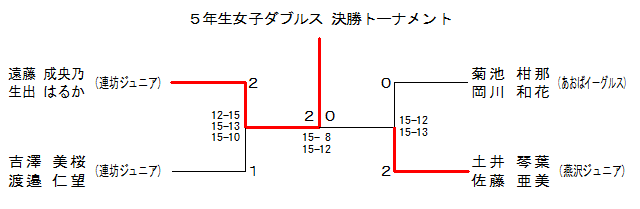 | 5年生女子ダブルス Aブロック | 遠藤 生出 | 菊池 岡川 | 相澤 佐藤 | 早坂 大場 | 順位 |